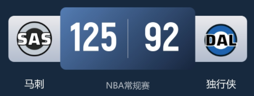 马刺(1-0):文班亚马40分15板1助3帽、卡斯尔22分7板6助2断、哈珀15分4板2助、瓦塞尔13分3板4助2断、凯尔登11分5板2助、巴恩斯7分2板1助、尚帕尼5分4板2助、加西亚5分1板2助、英格拉姆3分1板、科内特2分4板3助2帽、麦克劳林2分1助、布莱恩特2板、比永博1板2断、米尼克斯1板