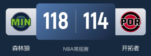 休息归来,开拓者面对森林狼的猛烈追击,总能打进关键球,保持住领先优势,双方一直拉锯到末段。不过,杨瀚森在下半场未能再次获得上场机会。决胜时刻,爱德华兹展现巨星风范,连续轰进三记三分,帮助森林狼完成反超,并最终锁定胜局。最终,森林狼客场逆转开拓者,迎来新赛季的开门红。
