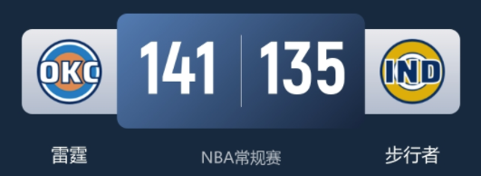 终极对决中,亚历山大造成马瑟林第六次犯规将其罚下,阿隆·维金斯连续命中两记三分建立优势。步行者谢泼德同样六犯离场后,雷霆最终以141-135惊险取胜。