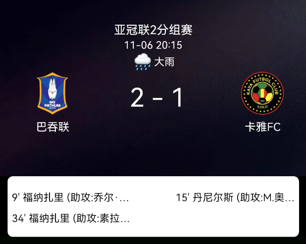 北京时间11月2日,亚足联冠军联赛二级联赛,春武里主场对阵巴吞联。第29分钟,博林吉点射破门,春武里1-0;第53分钟,土井智之破门,巴吞联1-1;第63分钟,土井智之再罚点球命中,巴吞联2-1。全场无红黄牌判罚,最终比分,春武里1-2巴吞联。