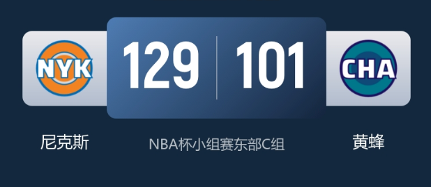 11月27日消息,在NBA杯小组赛东部C组的一场对决中,尼克斯队远赴客场,挑战黄蜂队。赛前黄蜂队已遭遇6连败,小组赛更是2战全负;尼克斯队则以1胜1负的小组战绩,渴望客场取胜提升排名。