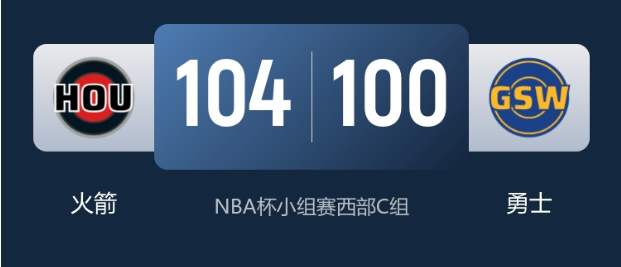 然而,火箭队在末节延续了反击势头,内外开花再度打出12-2的攻势,成功反超并取得领先。勇士队迅速调整,打出一波7-0稳住局势,此后双方争夺陷入白热化,比分交替领先。关键时刻,火箭队的谢泼德挺身而出,连投带罚拿下关键分数稳住局势。勇士队虽拼尽全力追赶,但未能实现反超,且库里在比赛中提前伤退。最终,火箭队以104-100力克勇士队,在客场成功过关。