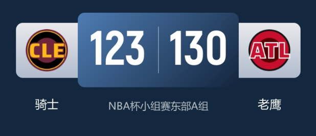 NBA战报:老鹰130-123主场力克骑士杰伦约翰逊三双领衔