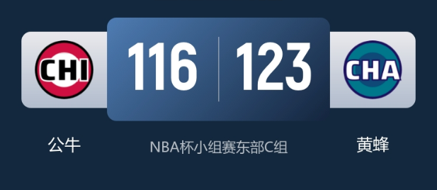 NBA战报:黄蜂123-116力克公牛终结7连败3人20+火力制胜