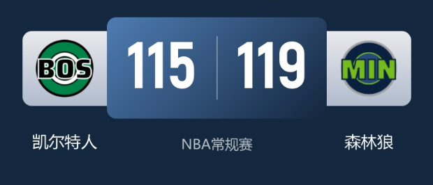 11月30日消息,在NBA常规赛的一场焦点对决中,森林狼队坐镇主场迎战凯尔特人队。赛前森林狼队已遭遇3连败,以10胜8负的战绩排在西部第7;凯尔特人队同样以10胜8负位列东部第9,双方都渴望通过这场胜利扭转颓势,此役堪称东西部中游球队的关键卡位战。