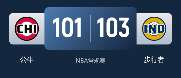 NBA战报:步行者103-101绝杀公牛送对手3连败西亚卡姆24+9中投制胜