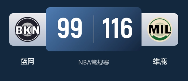 NBA战报:雄鹿116-99大胜篮网终结七连败字母哥19分钟29+8统治全场