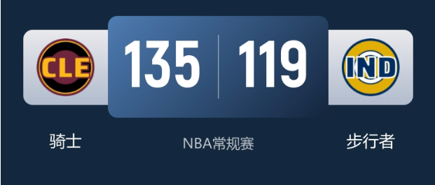 NBA战报:骑士135-119轻取步行者米切尔43+9+6封神泰森27+11超高效助力