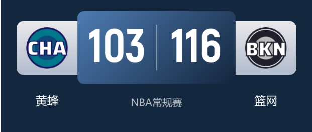 NBA战报:篮网116-103力擒黄蜂终结4连败小波特35+7领衔多点开花