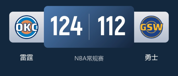 NBA战报:雷霆124-112拒绝逆转胜勇士豪取13连胜创历史级开局亚历山大38分破万分之夜封神