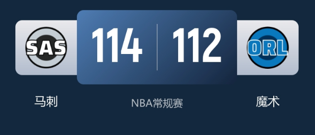 末节决战,剧情跌宕起伏。魔术队延续反扑势头,小瓦格纳命中三分、比塔泽完成暴扣,将分差追至仅1分。福克斯造犯规两罚全中维持3分优势,随后贝恩上篮不中,索汉关键时刻两罚不中,给了魔术翻盘机会。小瓦格纳挺身而出,制造巴恩斯三分犯规,三罚全中将比分扳为112-112平。生死时刻,艾萨克出现不冷静抢断犯规,送给福克斯两次罚球,后者稳稳命中完成绝杀;魔术最后一攻,小瓦格纳的出手被科内特压哨封盖。最终,马刺队以114-112险胜魔术队,豪取2连胜的同时终结对手3连胜。