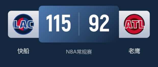 NBA战报:快船115-92大胜残阵老鹰终结5连败哈登27+9创纪录封神小卡复出首胜