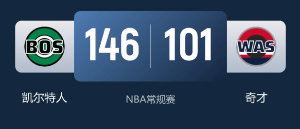末节决战,凯尔特人队上演得分盛宴。安芬尼-西蒙斯独中4记三分,带领球队轰出21-5的恐怖攻势,将分差一举扩大到39分。奇才队完全哑火,攻防体系彻底瘫痪,无力发起任何有效反击。最终,凯尔特人队以146-101狂胜奇才队,客场轻松过关,豪取3连胜的同时,送给对手两连败。