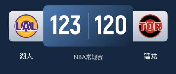NBA战报:湖人123-120险胜猛龙八村塁压哨三分绝杀里夫斯44+11封神老詹1297场连双纪录终结