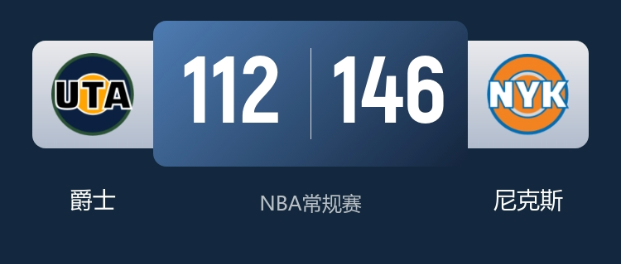 NBA战报:尼克斯146-112狂胜爵士豪取2连胜23-0开局创26年神迹布伦森33+6三分小麦7记三分封神