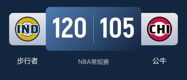 NBA战报:步行者120-105擒公牛破冰赛季客场首胜终结颓势西亚卡姆36+9+5三分马瑟林28+6三分封神