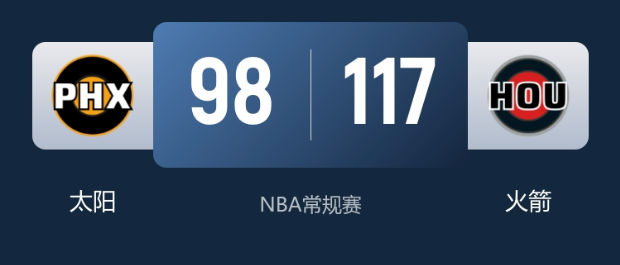 NBA战报:火箭117-98轻取太阳豪取2连胜升至西部第二KD31000分里程碑+28+8封神阿门31分创赛季新高