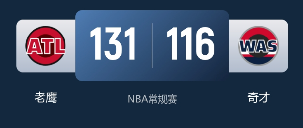 末节战局再生波澜,奇才队延续追分势头,成功将比分扳平。老鹰队迅速调整,马上回敬一波8-0的攻击波重新掌握主动。此后老鹰稳扎稳打,杰伦-约翰逊的串联与肯纳德的外线火力形成互补,始终保持领先优势。奇才队苦苦追赶无果,最终老鹰以131-116击败对手,客场顺利过关。
