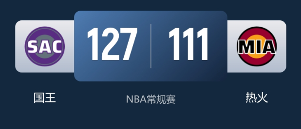 NBA战报:国王127-111大胜热火终结4连败拉文42+6封神威少12+10里程碑