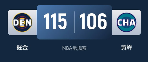 NBA战报:掘金115-106力克黄蜂豪取3连胜客场10连胜创纪录穆雷首节23分封神约基奇28+9+11书写历史