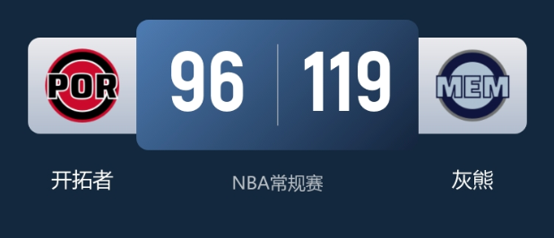 NBA战报:灰熊119-96轻取开拓者豪取2连胜杨瀚森生涯首发出战19分钟4+5+2逆境中显韧性