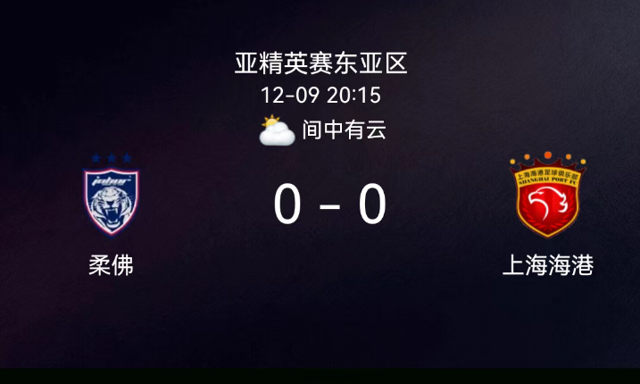 北京时间12月9日,2025赛季亚冠精英联赛第6轮,柔佛新山主场迎战上海海港。双方全场无进球;柔佛3黄、海港1黄;无红牌。最终比分,柔佛新山0-0上海海港。