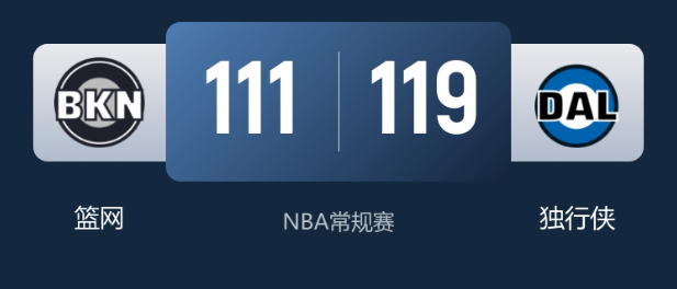 NBA常规赛战报:独行侠119-111力克篮网止颓浓眉24+14+3断+3帽统治攻防弗拉格22+8串联小波特34分空砍