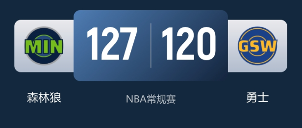 NBA常规赛战报:库里复出39+5+5空砍勇士125-131主场不敌森林狼戈贝尔24+14统治内线迪文岑佐关键三分弑旧主