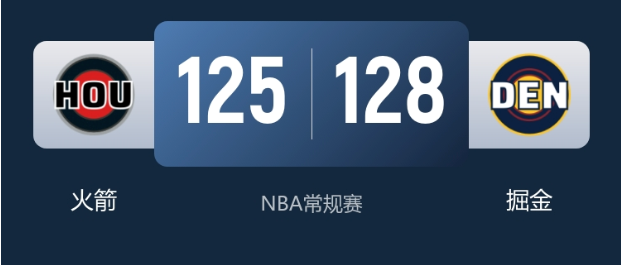 NBA常规赛战报:掘金加时128-125险胜火箭豪取5连胜约基奇39+15+10六犯离场申京三双失绝平KD5帽成空砍