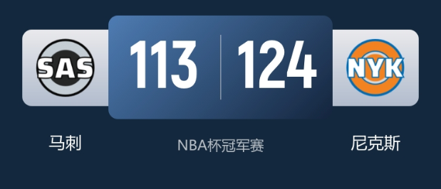 NBA杯总决赛战报:尼克斯末节15-3一波流逆转马刺41年后复仇登顶布伦森25+8荣膺MVP文班18+6替补空砍