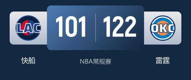 末节决战,雷霆队稳扎稳打锁定胜局。球队以杰伦-威廉姆斯和霍姆格伦带队维持分差,防守端依旧保持高强度压迫,让快船队失误不断。快船队在比赛还剩6分多钟时,便逐步换下莱昂纳德等主力球员,提前宣告投降,比赛进入垃圾时间。最终,雷霆队以122-101轻松取胜,豪取13连胜。