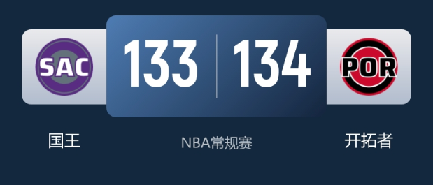 NBA常规赛战报:阿夫迪亚35分+罚球反绝杀开拓者加时134-133险胜国王杨瀚森未登场德罗赞33分空砍