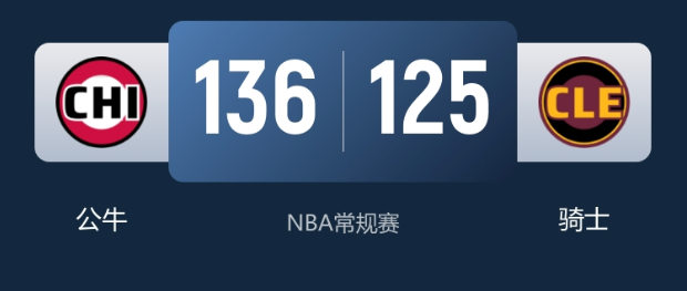 NBA常规赛战报:公牛7人上双多点开花136-125双杀骑士送3连败武切维奇24+15统治内线加兰35+8致命失误空砍米切尔缺阵骑士崩盘