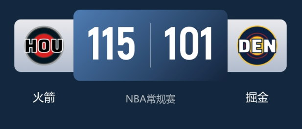 NBA常规赛战报:火箭115-101客场复仇掘金终结6连胜杜兰特31+6+5主导谢泼德双三分波+28分约基奇5犯5失误挣扎