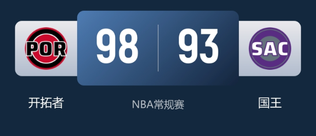 NBA常规赛战报:阿夫迪亚24+7+10全能串联开拓者98-93险胜国王杨瀚森未登场威少7+8+7+5断拼尽全力空砍
