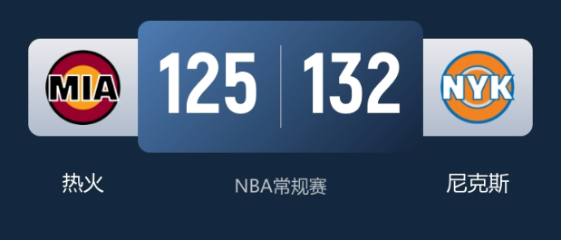 末节决战,双方展开白热化拉锯战,分差始终紧咬。热火的韦尔里突外投持续发力,带领球队不断追分,一度将分差缩小至仅2分,看到逆转希望。关键时刻,尼克斯的布里奇斯再次挺身而出,命中一记稳定军心的关键三分完成“止血”。随后布伦森接管比赛,面对双人包夹先是打成2+1,接着命中45度角后撤步三分,终场前28秒更是用一记后撤步三分彻底锁定胜局,麦迪逊广场花园瞬间沸腾。最终,尼克斯队以132-125稳稳拿下比赛,成功“扑灭”热火。