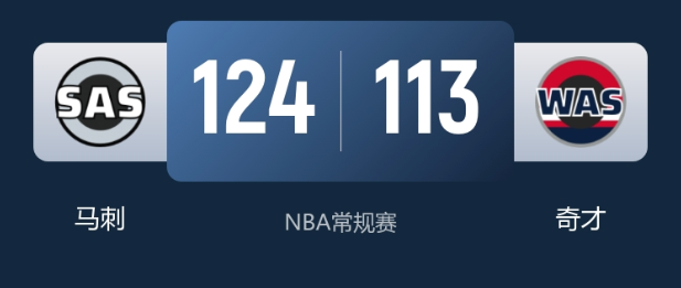 NBA常规赛战报:福克斯27+7+6引领进攻马刺124-113击败奇才豪取6连胜文班14+12卡斯尔18+11全能串联