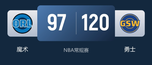 NBA常规赛战报:库里26分+末节10-0攻势勇士三人20+轻取魔术迎连胜班凯罗21+12+7空砍