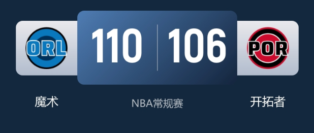 末节决战,开拓者攻势如虹,先拿6分将分差追到个位数,随后夏普跳投得分完成反超。双方陷入拉锯战,悬念持续到最后时刻:开拓者的克林根篮下进攻遭贝恩封盖,贝恩随后两罚全中锁定优势,阿夫迪亚的绝平三分打铁。最终魔术110-106险胜开拓者,成功拒绝连败。
