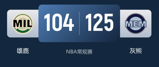 末节决战,雄鹿虽仍试图发起追分攻势,但受限于核心缺失的阵容短板,始终无法打出有效的追分高潮。灰熊则全员发力稳扎稳打,不断通过精准传导寻找得分机会,将领先优势持续巩固。随着比赛时间逐渐耗尽,分差始终保持在安全范围,雄鹿彻底失去翻盘希望。最终,灰熊队以125-104稳稳拿下比赛,主场收获一场大胜。