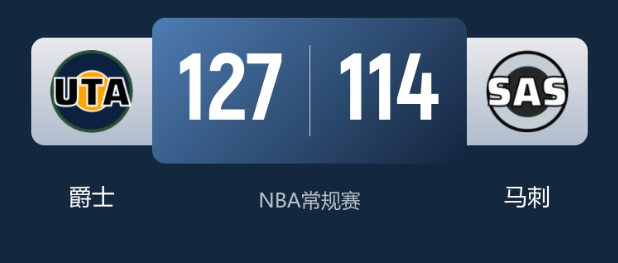 NBA常规赛战报:马尔卡宁29+3断乔治28+6双核驱动爵士127-114终结马刺8连胜文班32+7+5帽惊天隔扣难救主