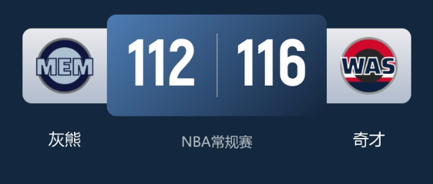 NBA常规赛战报:萨尔20+9+6帽创纪录奇才7人上双116-112击退灰熊莫兰特21+7空砍