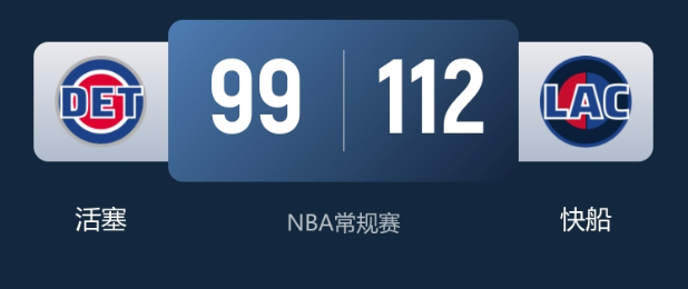 末节决战,双方陷入拉锯战,交替取分。活塞虽仍未放弃,杜伦在内线持续发力抢下关键篮板并完成二次进攻,但始终无法将分差缩小到个位数。快船则稳扎稳打,哈登通过精准传球串联替补阵容,巴图姆也命中关键三分巩固优势。随着比赛时间逐渐耗尽,比赛彻底失去悬念。最终,快船队以112-99稳稳拿下比赛,主场成功过关。