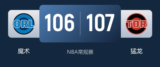末节决战,猛龙掀起绝地反击浪潮,打出一波13-0的窒息式攻击波,直接实现反超。魔术陷入长时间得分荒,虽随后稳住阵脚,但关键时刻未能完成追分。比赛最后一攻,魔术落后1分,班凯罗持球出手绝杀三分不中,最终猛龙以107-106险胜对手。