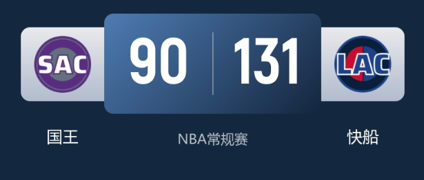 NBA常规赛战报:小卡33+5+5哈登21+5快船41分大胜国王豪取5连胜