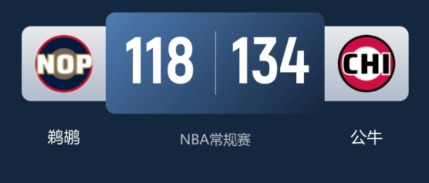 末节决战,鹈鹕将比分追至98-102后突然崩盘。公牛抓住机会打出10-2的攻势拉开差距,随后保持高效输出,彻底杀死比赛悬念。最终公牛以134-118取胜,鹈鹕则苦吞五连败。
