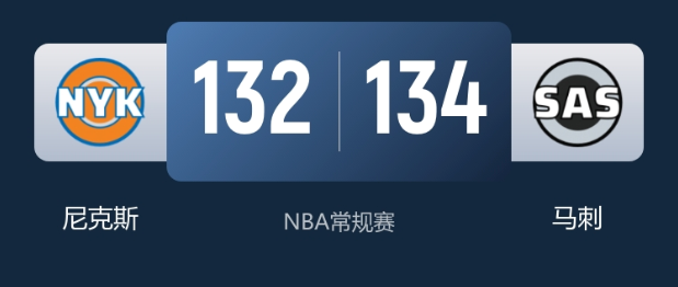 1月1日消息,NBA常规赛焦点对决上演,遭遇两连败的圣安东尼奥马刺主场迎战取得三连胜的纽约尼克斯。此役瓦塞尔、哈特等多名球员缺战,文班亚马伤退的情况下,马刺凭借尚帕尼的爆发完成逆转,134-132险胜尼克斯,终结自身两连败的同时,终结对手三连胜。