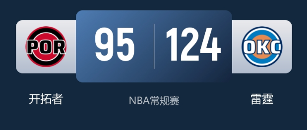 1月1日消息,NBA常规赛焦点对决上演,联盟领头羊俄克拉荷马城雷霆坐镇主场迎战波特兰开拓者。雷霆凭借攻防两端的全面压制,最终124-95大胜开拓者,延续领跑势头。