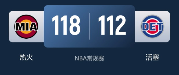 末节初,活塞延续反扑势头,将分差缩小至个位数。末段活塞连续冲击三分线,一度追至仅差2分,看到逆转希望。关键时刻哈克斯挺身而出命中关键球,帮助热火稳住局势。最终热火118-112险胜,成功收获四连胜。