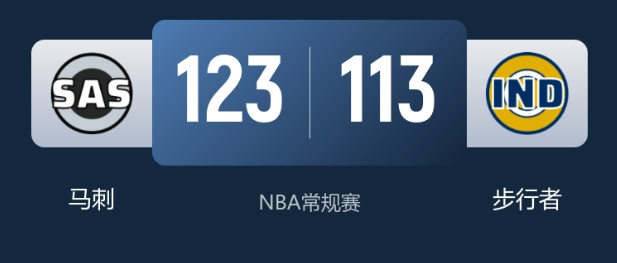 末节决战,马刺迅速找回状态,上来便打出17-8的攻势,重新拉开比分奠定胜局。替补席贡献关键火力,成为球队稳守优势的重要保障。末段步行者卷土重来将分差追至个位数,但时间所剩无几。最终马刺123-113锁定胜局,成功拿下比赛。